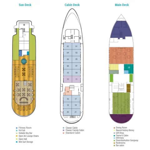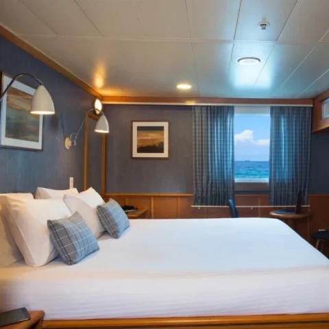 The Isabela II is a stylish expedition yacht that hosts up to 40 passengers, promising an intimate Galapagos experience. Renowned for its attentive service, it offers comfortable cabins with large windows, providing stunning views. With knowledgeable naturalist guides, guests can explore the islands' diverse ecosystems and wildlife. The ship's elegant design seamlessly blends modern comfort with a touch of classic luxury. With a focus on sustainability, the Isabela II offers an enriching and responsible exploration of the Galapagos archipelago.
